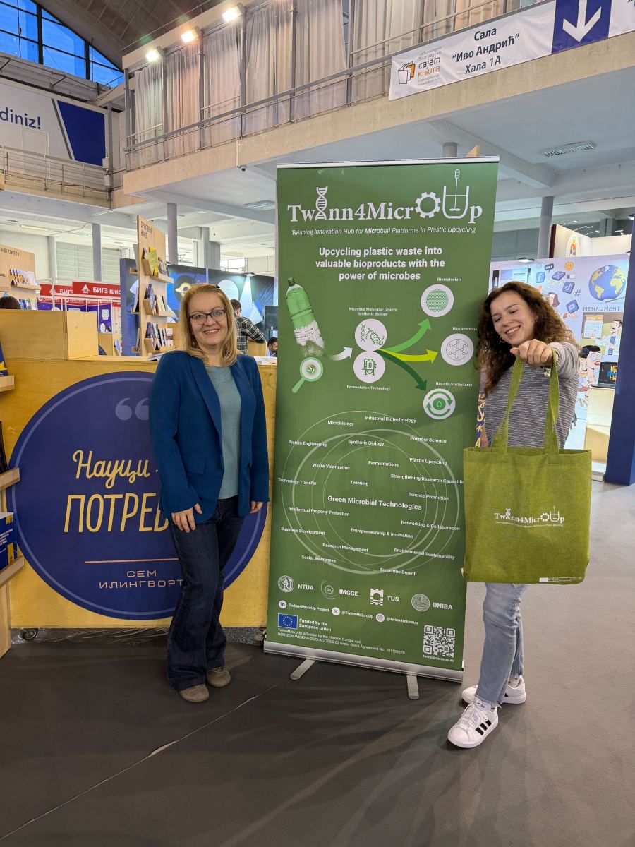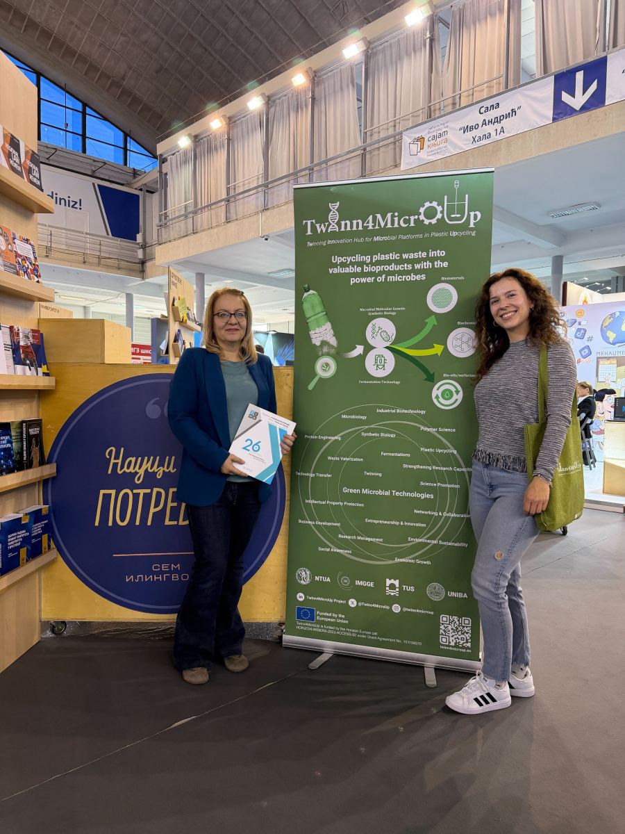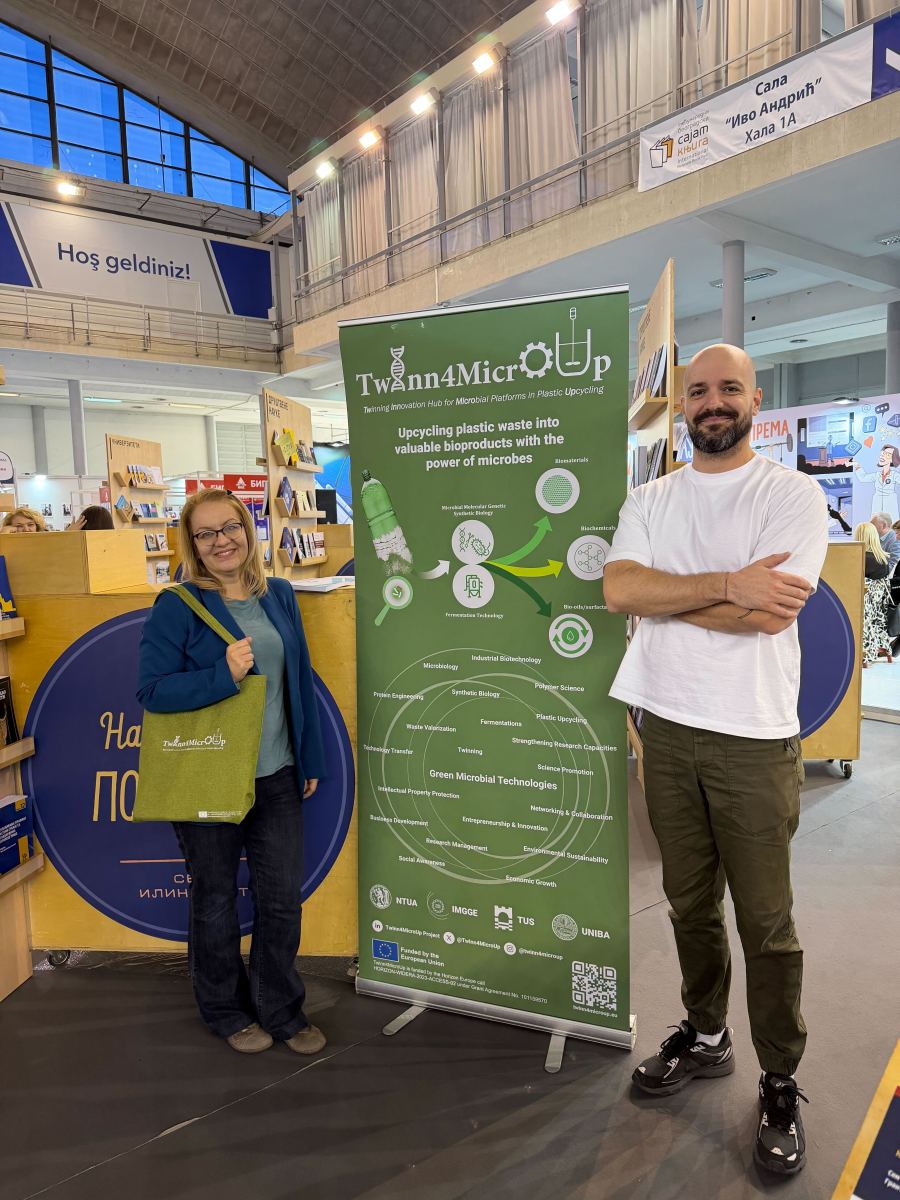 Later that year, the TwInn4MicroUp team participated in the International Book Fair in Belgrade (25 October-2 November 2025). Led by Jasmina Nikodinović-Runić, Ivana Aleksić, and Dušan Milivojević, the team presented the project’s goals and achievements to a broad public audience, including students, educators, publishers, and media. The fair served as an ideal venue to communicate the importance of microbial biotechnology and plastic upcycling in a relatable, engaging way, promoting awareness of Horizon Europe initiatives and inclusive science communication.